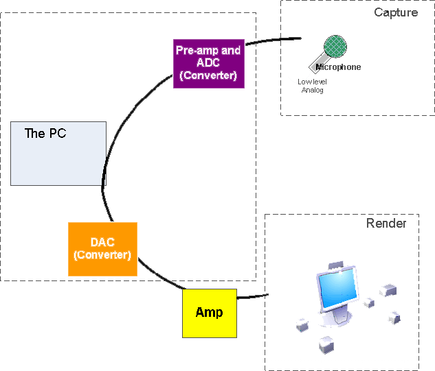 in the audio chain, with color coding to indicate the difficulty of acquiring