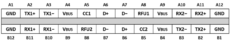 - A6 and A7 are USB 2.0 D+/D- bus, B6 and B7 can be used as serial link to convey digital audio content and controls when in docking alternate mode