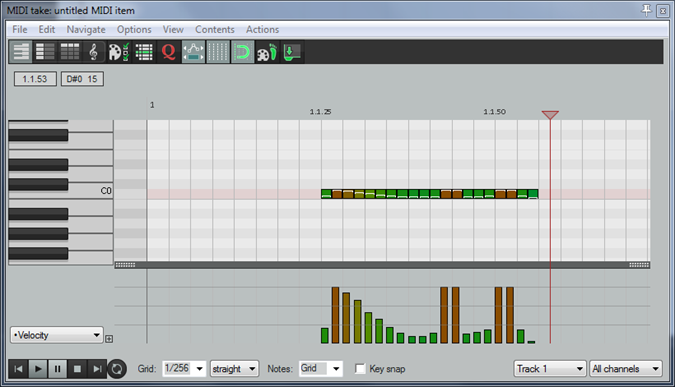 MIDI has been used before in the creation of haptic content. Project BBQer Peter “pdx” Drescher, for instance, used MIDI for the creation of haptic vibration on the T-Mobile Sidekick (c. 2002). Ringtones on the phone used MIDI for music, haptic vibration and LED lights. The use of MIDI then is already a tried-and-tested way to distribute haptic information. What we need next is to standardize the use of MIDI for haptics. A brief statement regarding the group’s solutions to those problems, or a statement describing the progress that was made if no solution was determined: Our solution is to adopt and adapt the MIDI protocol for haptic devices. When considering most media playback/interactions systems (e.g. iOS, Linux, Android, Windows etc) all of them have the capability to create, encode, decode and render midi in some manner or another. Many of the content creation tools (e.g. Unity, Unreal Engine, Adobe Premier, Final Cut Pro, Ableton, Cubase etc) all have basic MIDI creation capabilities. The image below shows how Reaper’s MIDI editor was able to create the envelope for a vibro-haptic event, happening on Left Hand Thumb. It is possible, in other words, to use existing software to develop haptic MIDI content.