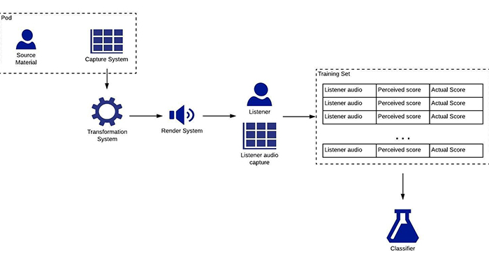 - As called out in the problem statement, the team’s focus was using the framework of an Audio Turing Test to evaluate a render / reproduction system. At first, we focused on the reproduction of a single talker. The target is mostly around single outputs (human voice, triangle, musical instrument, etc.). Machine Learning (ML) should be used to optimize the output system under test.